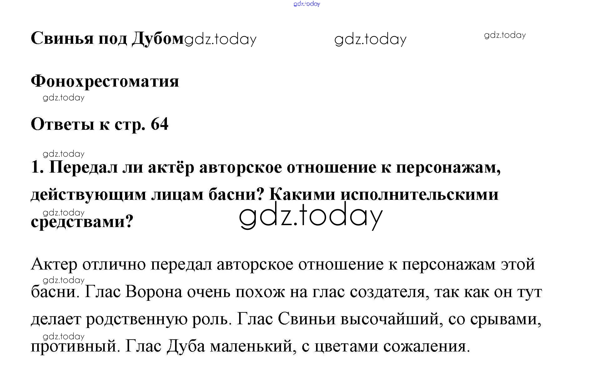 На страницах сайта gdz.today вы найдете учебный и вспомогательный материал, направленный на улучшения знаний школьной программы. ГДЗ - онлайн мир знаний Решение к части 1 (Страницы) 64 Учебнику по Литературе для 5 класса Коровина, Коровин Просвещение 2016