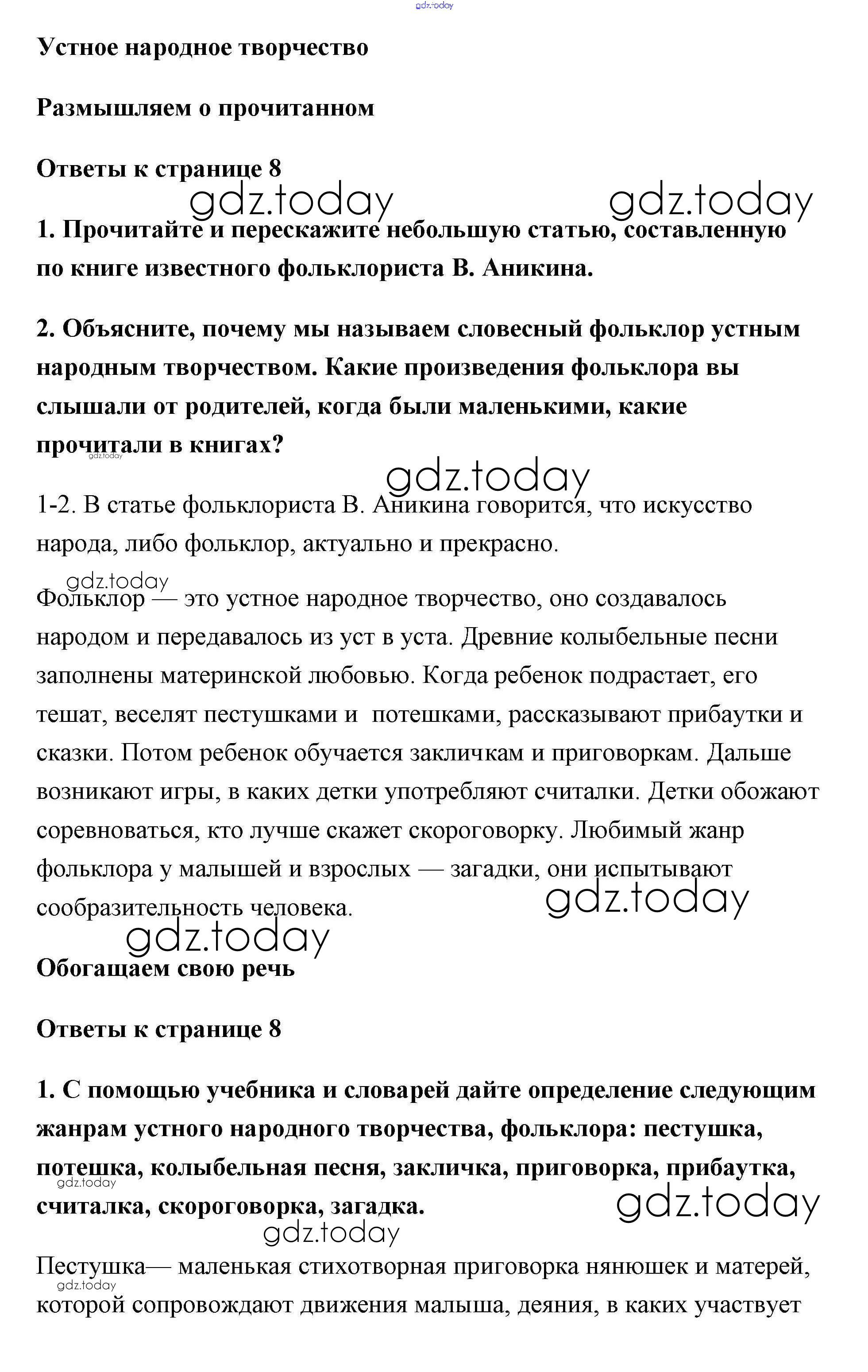 На страницах сайта gdz.today вы найдете учебный и вспомогательный материал, направленный на улучшения знаний школьной программы. ГДЗ - онлайн мир знаний Решение к части 1 (Страницы) 8 Учебнику по Литературе для 5 класса Коровина, Коровин Просвещение 2016