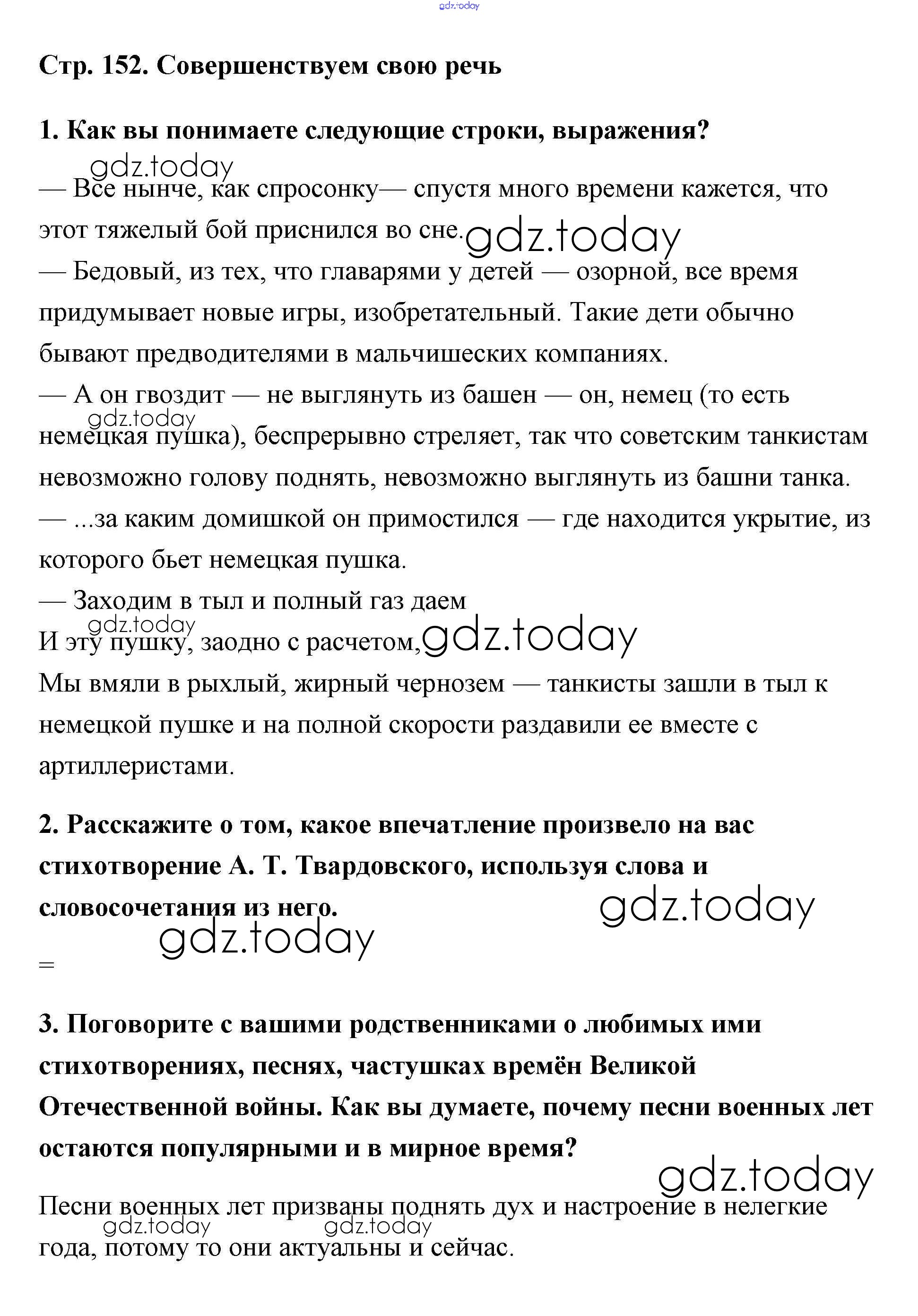 На страницах сайта gdz.today вы найдете учебный и вспомогательный материал, направленный на улучшения знаний школьной программы. ГДЗ - онлайн мир знаний Твардовский (Страницы) Решение к части 2 (Темы) 152 Учебнику по Литературе для 5 класса Коровина, Коровин Просвещение 2016