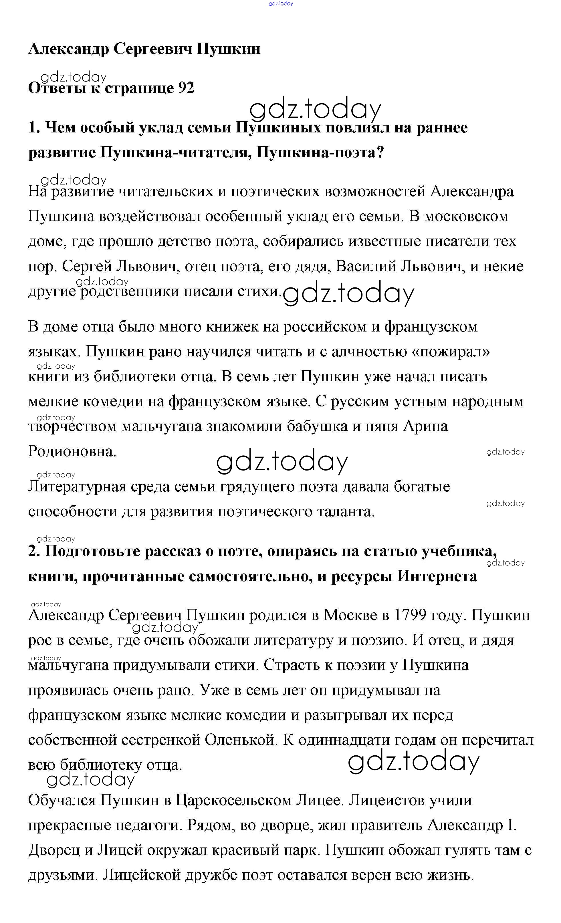 На страницах сайта gdz.today вы найдете учебный и вспомогательный материал, направленный на улучшения знаний школьной программы. ГДЗ - онлайн мир знаний Решение к части 1 (Страницы) 92 Учебнику по Литературе для 5 класса Коровина, Коровин Просвещение 2016