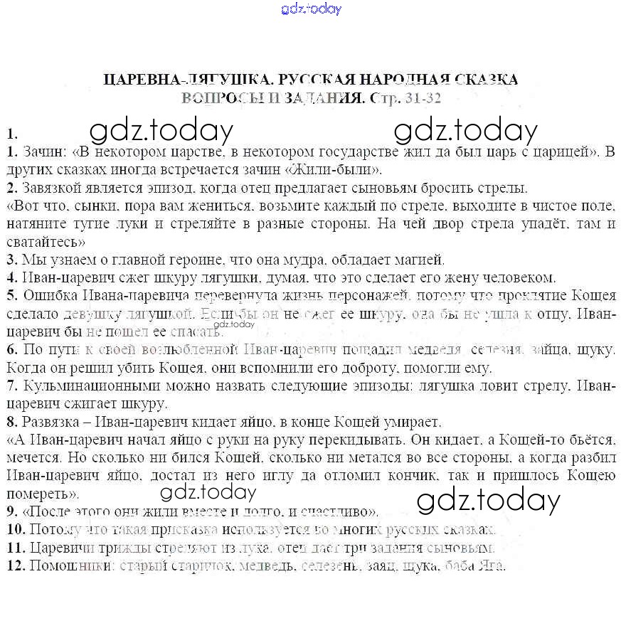 На страницах сайта gdz.today вы найдете учебный и вспомогательный материал, направленный на улучшения знаний школьной программы. ГДЗ - онлайн мир знаний Вопросы и задания на стр. 31-32 Решение к части 1 1 Учебнику-хрестоматии по Литературе для 5 класса Курдюмова Дрофа Вертикаль 2016