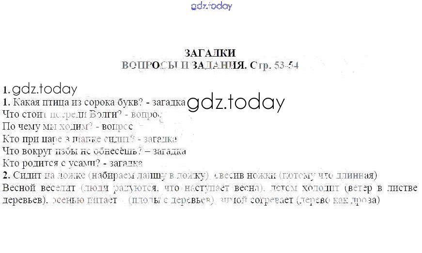 На страницах сайта gdz.today вы найдете учебный и вспомогательный материал, направленный на улучшения знаний школьной программы. ГДЗ - онлайн мир знаний Вопросы и задания на стр. 53-54 Решение к части 1 1 Учебнику-хрестоматии по Литературе для 5 класса Курдюмова Дрофа Вертикаль 2016