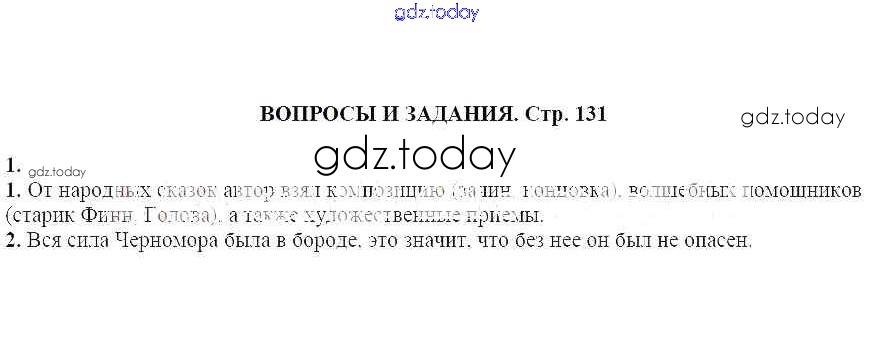 На страницах сайта gdz.today вы найдете учебный и вспомогательный материал, направленный на улучшения знаний школьной программы. ГДЗ - онлайн мир знаний Вопросы и задания на стр. 131 Решение к части 1 1 Учебнику-хрестоматии по Литературе для 5 класса Курдюмова Дрофа Вертикаль 2016