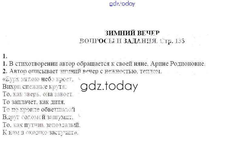 На страницах сайта gdz.today вы найдете учебный и вспомогательный материал, направленный на улучшения знаний школьной программы. ГДЗ - онлайн мир знаний Вопросы и задания на стр. 133 Решение к части 1 1 Учебнику-хрестоматии по Литературе для 5 класса Курдюмова Дрофа Вертикаль 2016