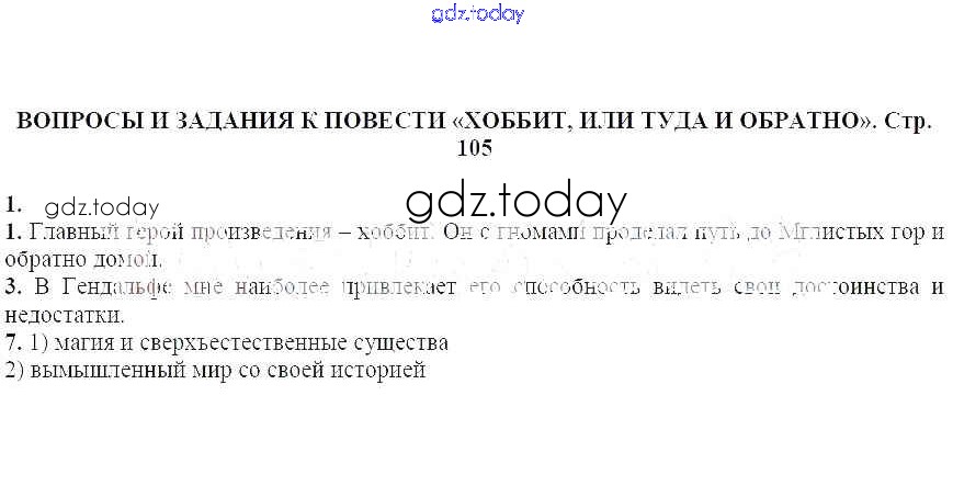 На страницах сайта gdz.today вы найдете учебный и вспомогательный материал, направленный на улучшения знаний школьной программы. ГДЗ - онлайн мир знаний Вопросы и задания на стр. 105 Решение к части 2 1 Учебнику-хрестоматии по Литературе для 5 класса Курдюмова Дрофа Вертикаль 2016