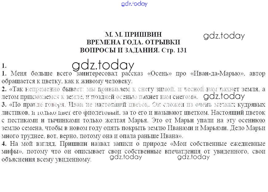 На страницах сайта gdz.today вы найдете учебный и вспомогательный материал, направленный на улучшения знаний школьной программы. ГДЗ - онлайн мир знаний Вопросы и задания на стр. 131 Решение к части 2 1 Учебнику-хрестоматии по Литературе для 5 класса Курдюмова Дрофа Вертикаль 2016