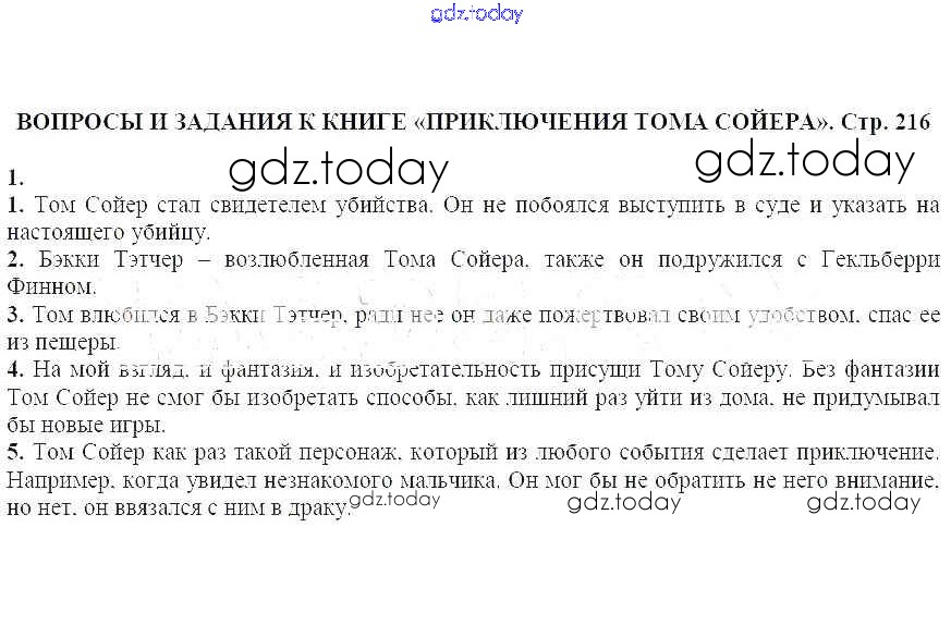 На страницах сайта gdz.today вы найдете учебный и вспомогательный материал, направленный на улучшения знаний школьной программы. ГДЗ - онлайн мир знаний Вопросы и задания на стр. 216 Решение к части 2 1 Учебнику-хрестоматии по Литературе для 5 класса Курдюмова Дрофа Вертикаль 2016