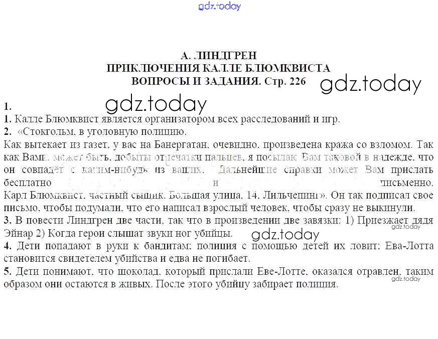 На страницах сайта gdz.today вы найдете учебный и вспомогательный материал, направленный на улучшения знаний школьной программы. ГДЗ - онлайн мир знаний Вопросы и задания на стр. 226 Решение к части 2 1 Учебнику-хрестоматии по Литературе для 5 класса Курдюмова Дрофа Вертикаль 2016
