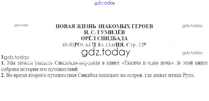 На страницах сайта gdz.today вы найдете учебный и вспомогательный материал, направленный на улучшения знаний школьной программы. ГДЗ - онлайн мир знаний Вопросы и задания на стр. 229 Решение к части 2 1 Учебнику-хрестоматии по Литературе для 5 класса Курдюмова Дрофа Вертикаль 2016