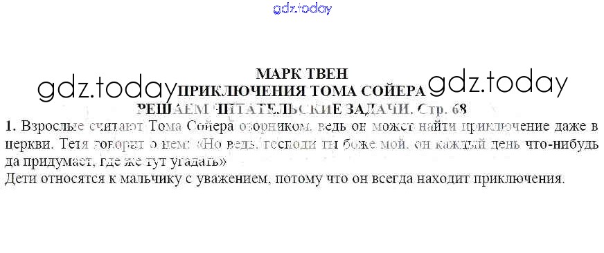 На страницах сайта gdz.today вы найдете учебный и вспомогательный материал, направленный на улучшения знаний школьной программы. ГДЗ - онлайн мир знаний Решаем читательские задачи (стр.68) Марк Твен. Приключения Тома Сойера 1 Учебнику по Литературе для 5 класса Ланин, Устинова Вентана-граф 2016