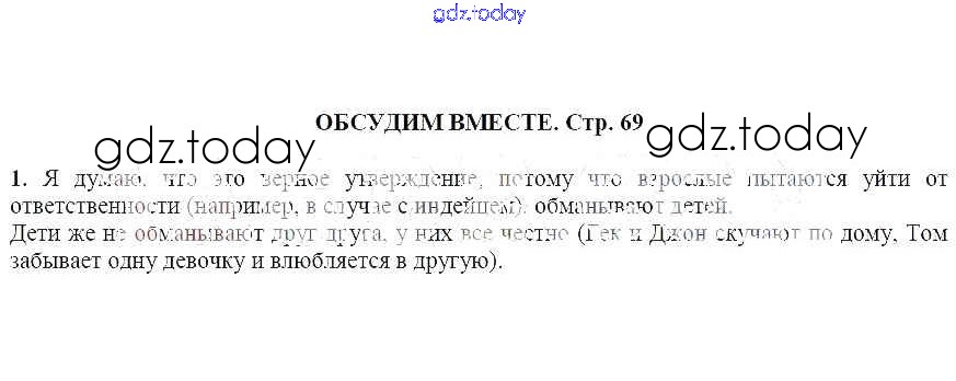 На страницах сайта gdz.today вы найдете учебный и вспомогательный материал, направленный на улучшения знаний школьной программы. ГДЗ - онлайн мир знаний Обсудим вместе (стр.69) Марк Твен. Приключения Тома Сойера 1 Учебнику по Литературе для 5 класса Ланин, Устинова Вентана-граф 2016