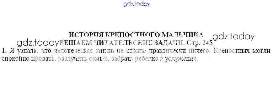 На страницах сайта gdz.today вы найдете учебный и вспомогательный материал, направленный на улучшения знаний школьной программы. ГДЗ - онлайн мир знаний Решаем читательские задачи (стр.245) История крепостного мальчика 1 Учебнику по Литературе для 5 класса Ланин, Устинова Вентана-граф 2016