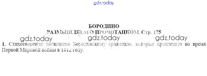 На страницах сайта gdz.today вы найдете учебный и вспомогательный материал, направленный на улучшения знаний школьной программы. ГДЗ - онлайн мир знаний Решение к части 1 (Страницы) 155 Учебнику по Литературе для 5 класса Коровина, Журавлев Просвещение 2019
