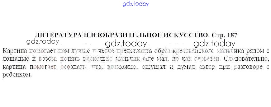 На страницах сайта gdz.today вы найдете учебный и вспомогательный материал, направленный на улучшения знаний школьной программы. ГДЗ - онлайн мир знаний Решение к части 1 (Страницы) 187 Учебнику по Литературе для 5 класса Коровина, Журавлев Просвещение 2019