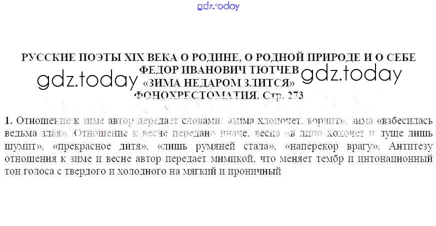 На страницах сайта gdz.today вы найдете учебный и вспомогательный материал, направленный на улучшения знаний школьной программы. ГДЗ - онлайн мир знаний Решение к части 1 (Страницы) 273 Учебнику по Литературе для 5 класса Коровина, Журавлев Просвещение 2019