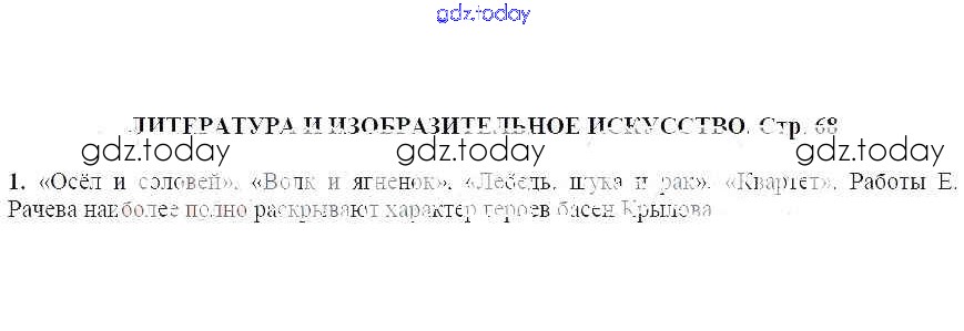 На страницах сайта gdz.today вы найдете учебный и вспомогательный материал, направленный на улучшения знаний школьной программы. ГДЗ - онлайн мир знаний Решение к части 1 (Страницы) 68 Учебнику по Литературе для 5 класса Коровина, Журавлев Просвещение 2019