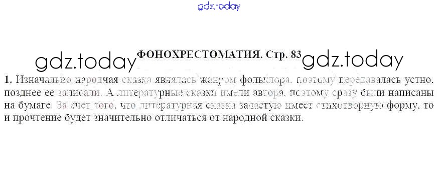 На страницах сайта gdz.today вы найдете учебный и вспомогательный материал, направленный на улучшения знаний школьной программы. ГДЗ - онлайн мир знаний Решение к части 1 (Страницы) 83 Учебнику по Литературе для 5 класса Коровина, Журавлев Просвещение 2019