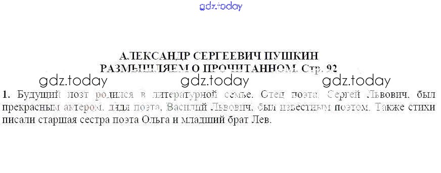 На страницах сайта gdz.today вы найдете учебный и вспомогательный материал, направленный на улучшения знаний школьной программы. ГДЗ - онлайн мир знаний Решение к части 1 (Страницы) 92 Учебнику по Литературе для 5 класса Коровина, Журавлев Просвещение 2019