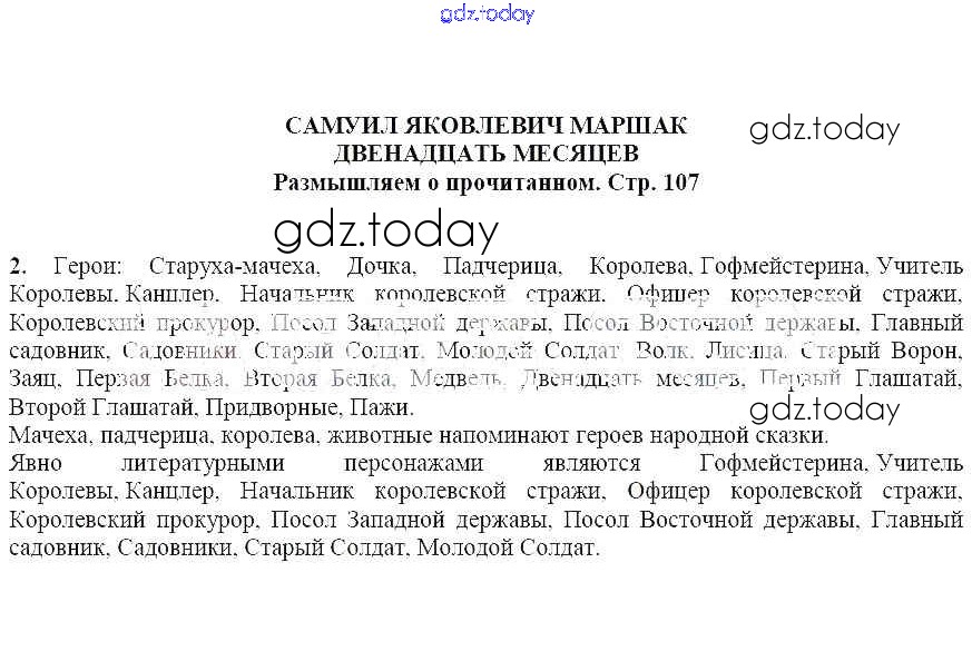 На страницах сайта gdz.today вы найдете учебный и вспомогательный материал, направленный на улучшения знаний школьной программы. ГДЗ - онлайн мир знаний Решение к части 2 (Страницы) 107 Учебнику по Литературе для 5 класса Коровина, Журавлев Просвещение 2019