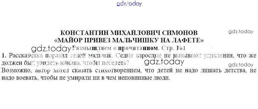 На страницах сайта gdz.today вы найдете учебный и вспомогательный материал, направленный на улучшения знаний школьной программы. ГДЗ - онлайн мир знаний Решение к части 2 (Страницы) 161 Учебнику по Литературе для 5 класса Коровина, Журавлев Просвещение 2019