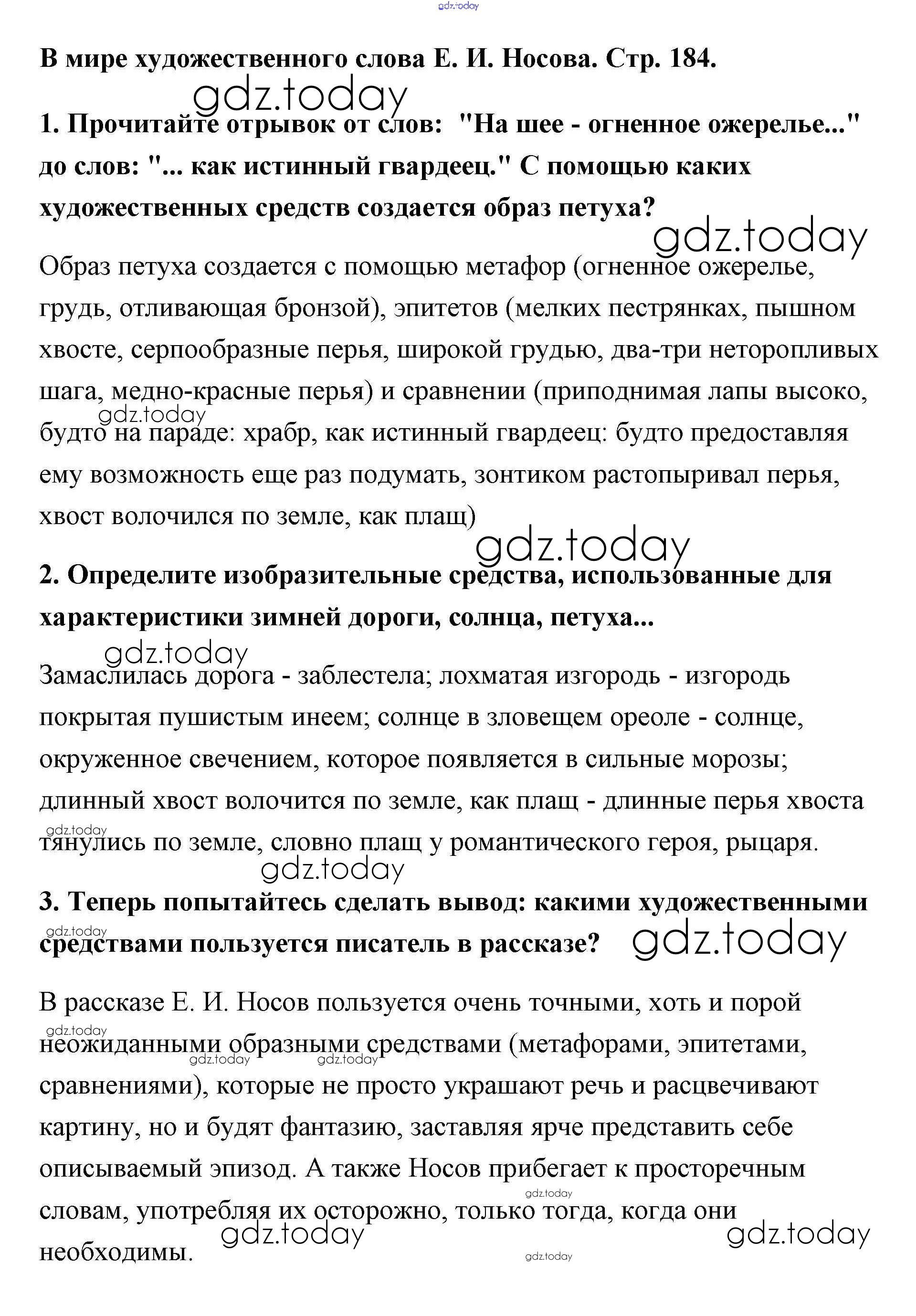 Ответы к Е. И. Носов Решение к части 2 (Страницы) 184 Учебнику по Литературе для 5 класса Меркин Русское слово Инновационная школа 2016
