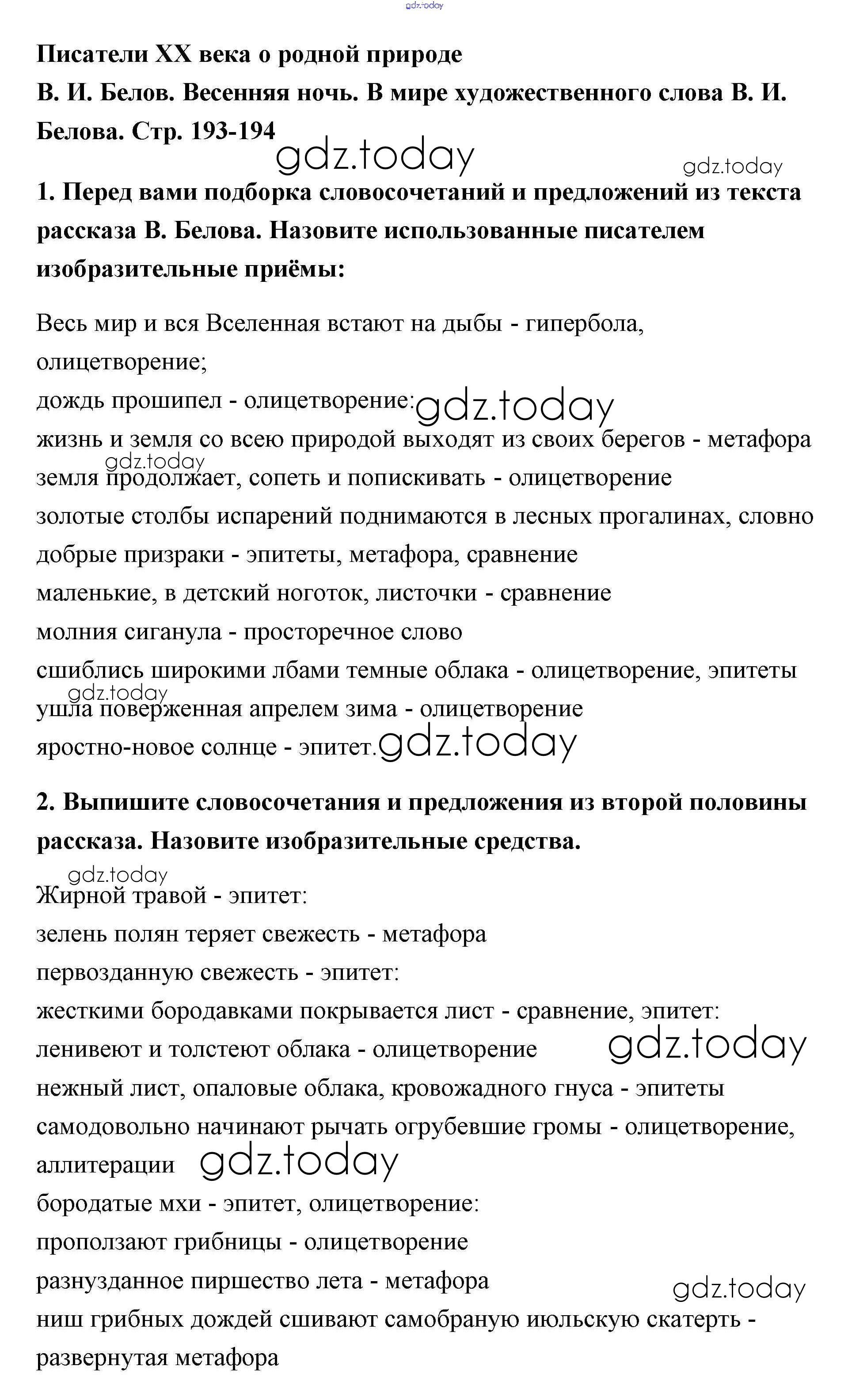 На страницах сайта gdz.today вы найдете учебный и вспомогательный материал, направленный на улучшения знаний школьной программы. ГДЗ - онлайн мир знаний В. И. Белов Решение к части 2 (Страницы) 193 Учебнику по Литературе для 5 класса Меркин Русское слово Инновационная школа 2016