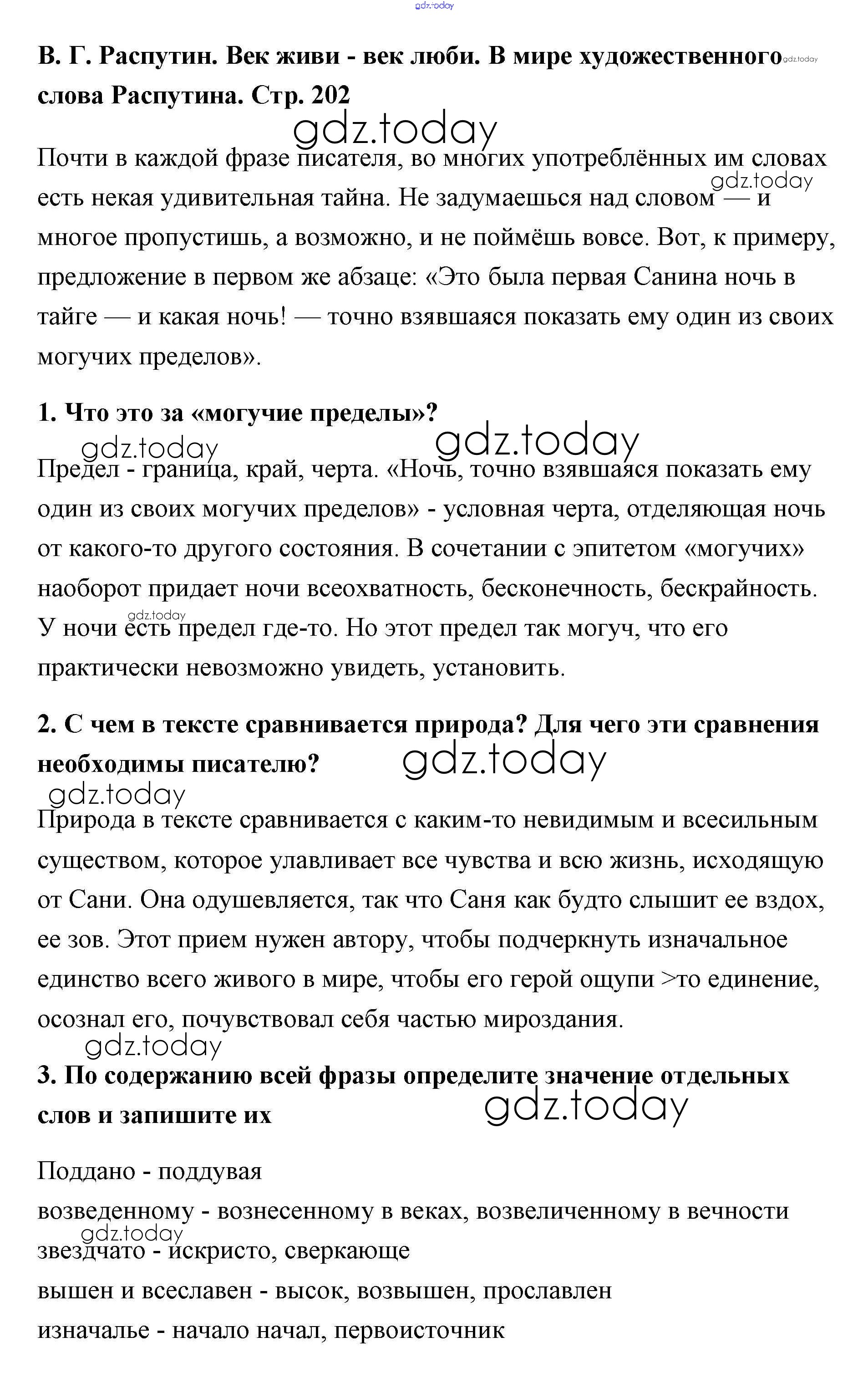 Ответы к В. Г. Распутин Решение к части 2 (Страницы) 202 Учебнику по Литературе для 5 класса Меркин Русское слово Инновационная школа 2016