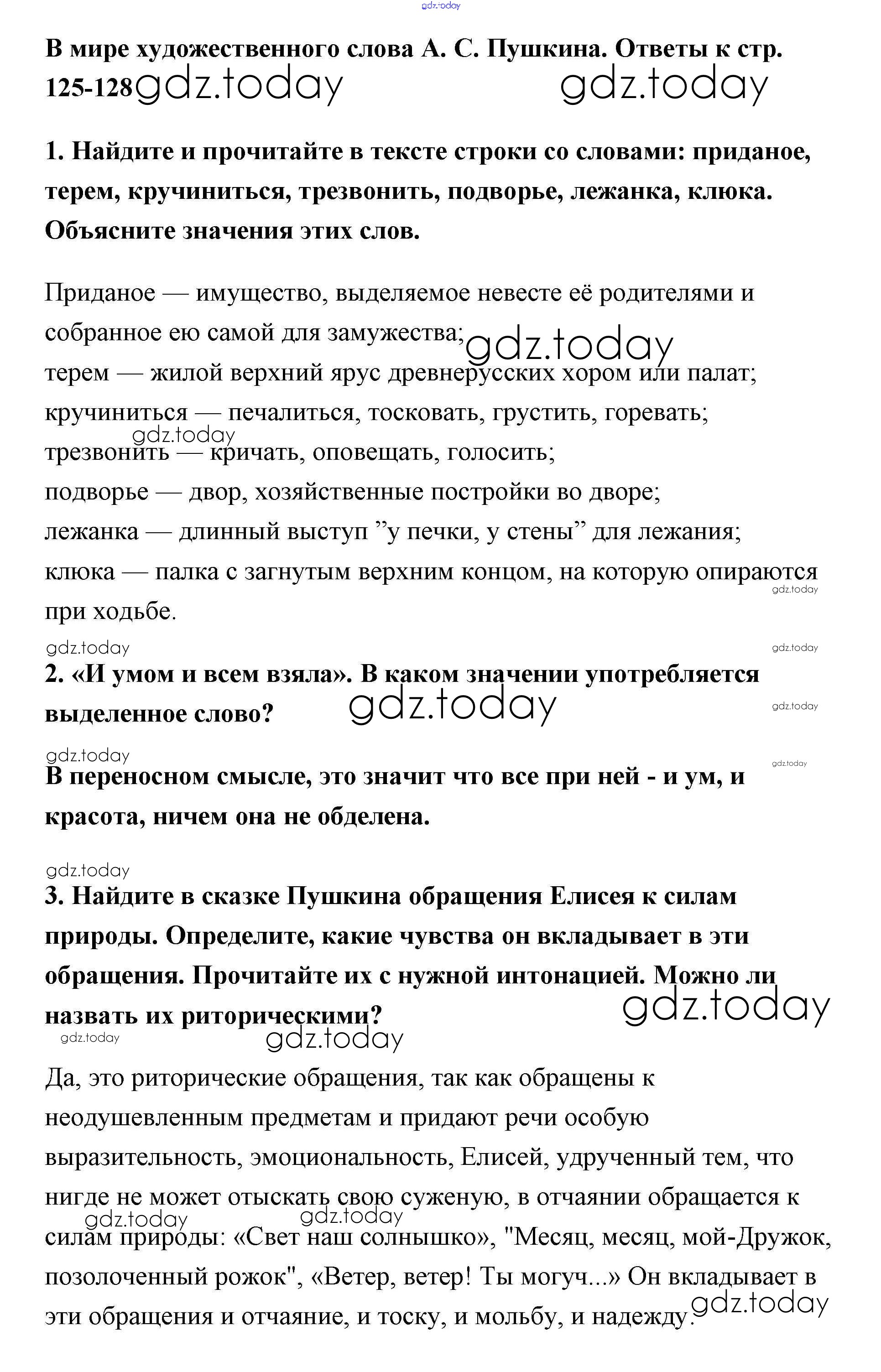 На страницах сайта gdz.today вы найдете учебный и вспомогательный материал, направленный на улучшения знаний школьной программы. ГДЗ - онлайн мир знаний Решение к части 1 (Страницы) 125-128 Учебнику по Литературе для 5 класса Меркин Русское слово Инновационная школа 2016