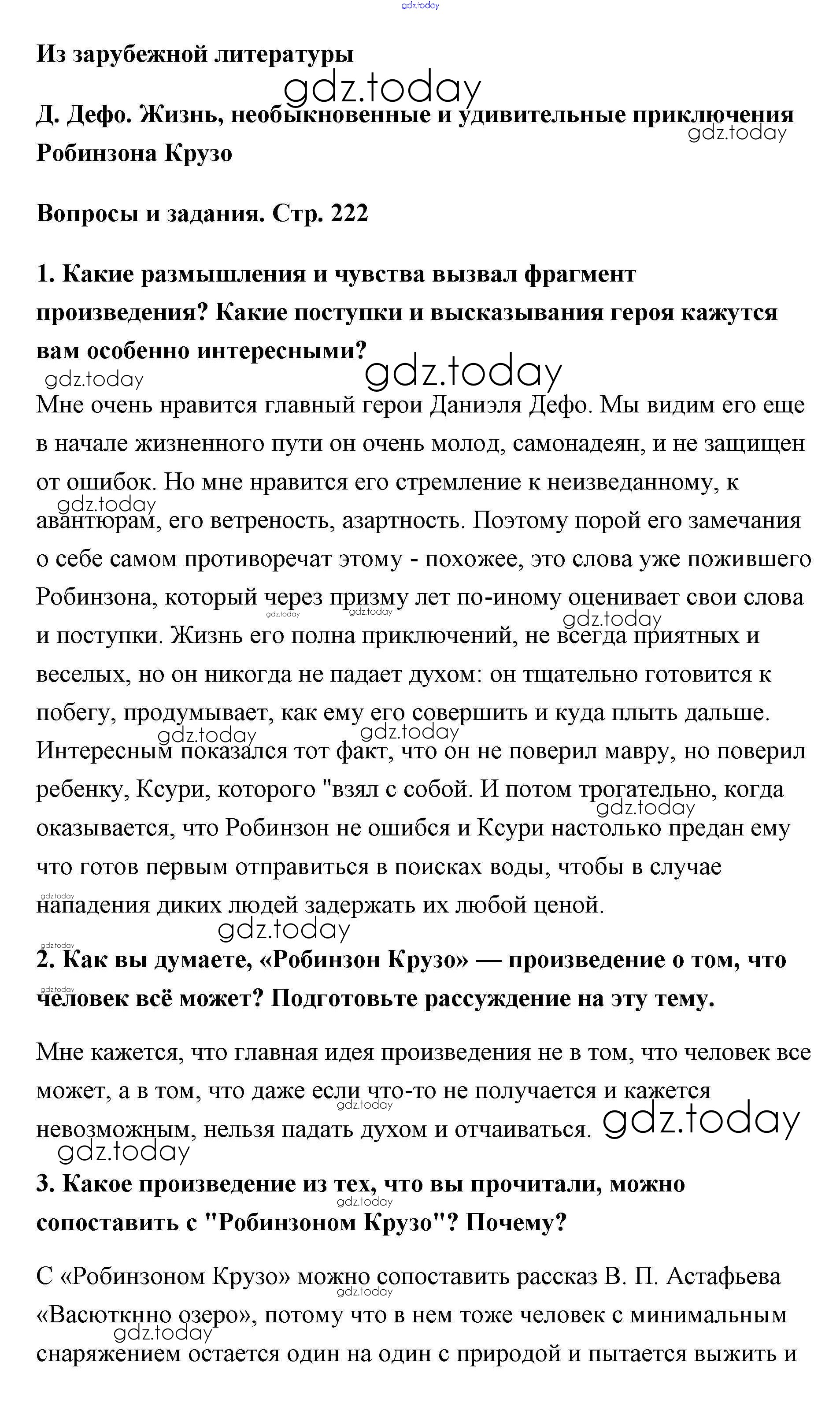 На страницах сайта gdz.today вы найдете учебный и вспомогательный материал, направленный на улучшения знаний школьной программы. ГДЗ - онлайн мир знаний Д. Дефо Решение к части 2 (Страницы) 222 Учебнику по Литературе для 5 класса Меркин Русское слово Инновационная школа 2016