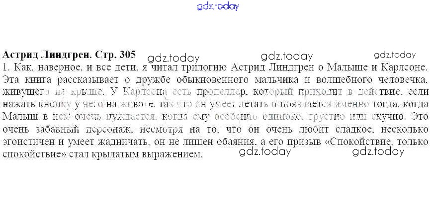 На страницах сайта gdz.today вы найдете учебный и вспомогательный материал, направленный на улучшения знаний школьной программы. ГДЗ - онлайн мир знаний А. Линдгрен Решение к части 2 (Страницы) 305 Учебнику по Литературе для 5 класса Меркин Русское слово Инновационная школа 2016