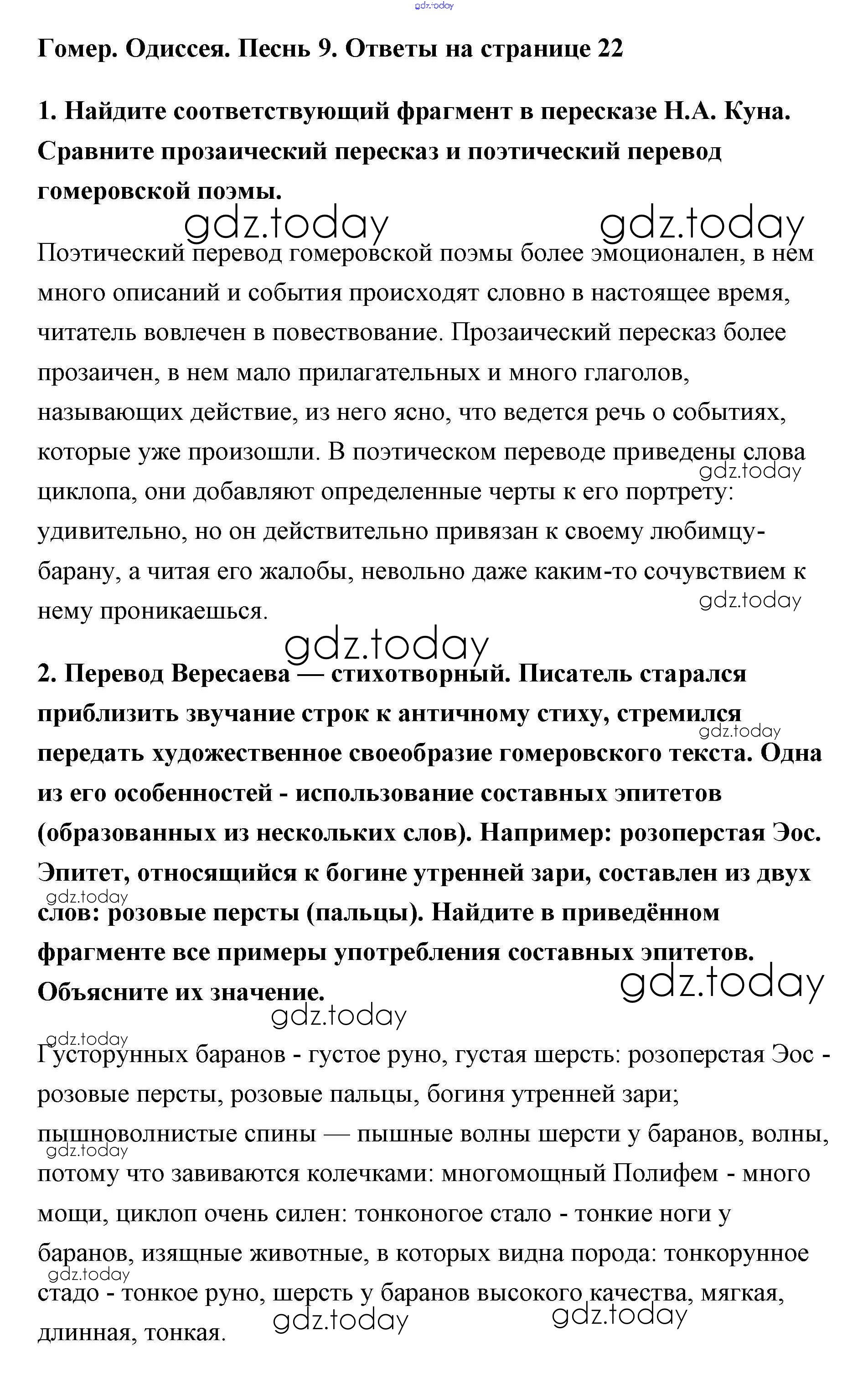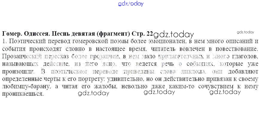 На страницах сайта gdz.today вы найдете учебный и вспомогательный материал, направленный на улучшения знаний школьной программы. ГДЗ - онлайн мир знаний Решение к части 1 (Страницы) 22 Учебнику по Литературе для 5 класса Меркин Русское слово Инновационная школа 2016