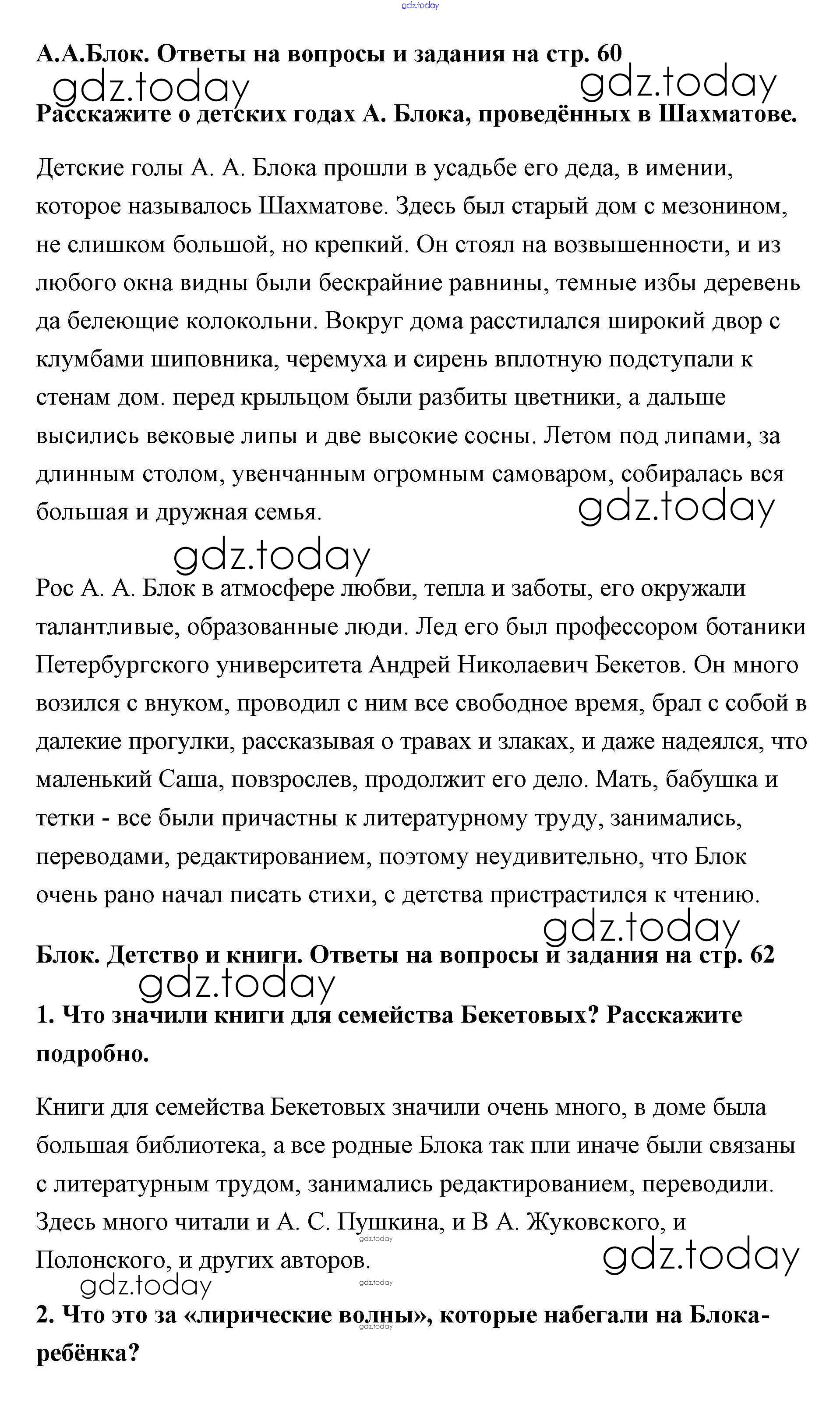 Ответы к А. А. Блок Решение к части 2 (Страницы) 60 Учебнику по Литературе для 5 класса Меркин Русское слово Инновационная школа 2016
