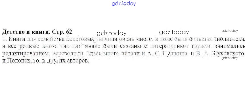 На страницах сайта gdz.today вы найдете учебный и вспомогательный материал, направленный на улучшения знаний школьной программы. ГДЗ - онлайн мир знаний А. А. Блок Решение к части 2 (Страницы) 62 Учебнику по Литературе для 5 класса Меркин Русское слово Инновационная школа 2016