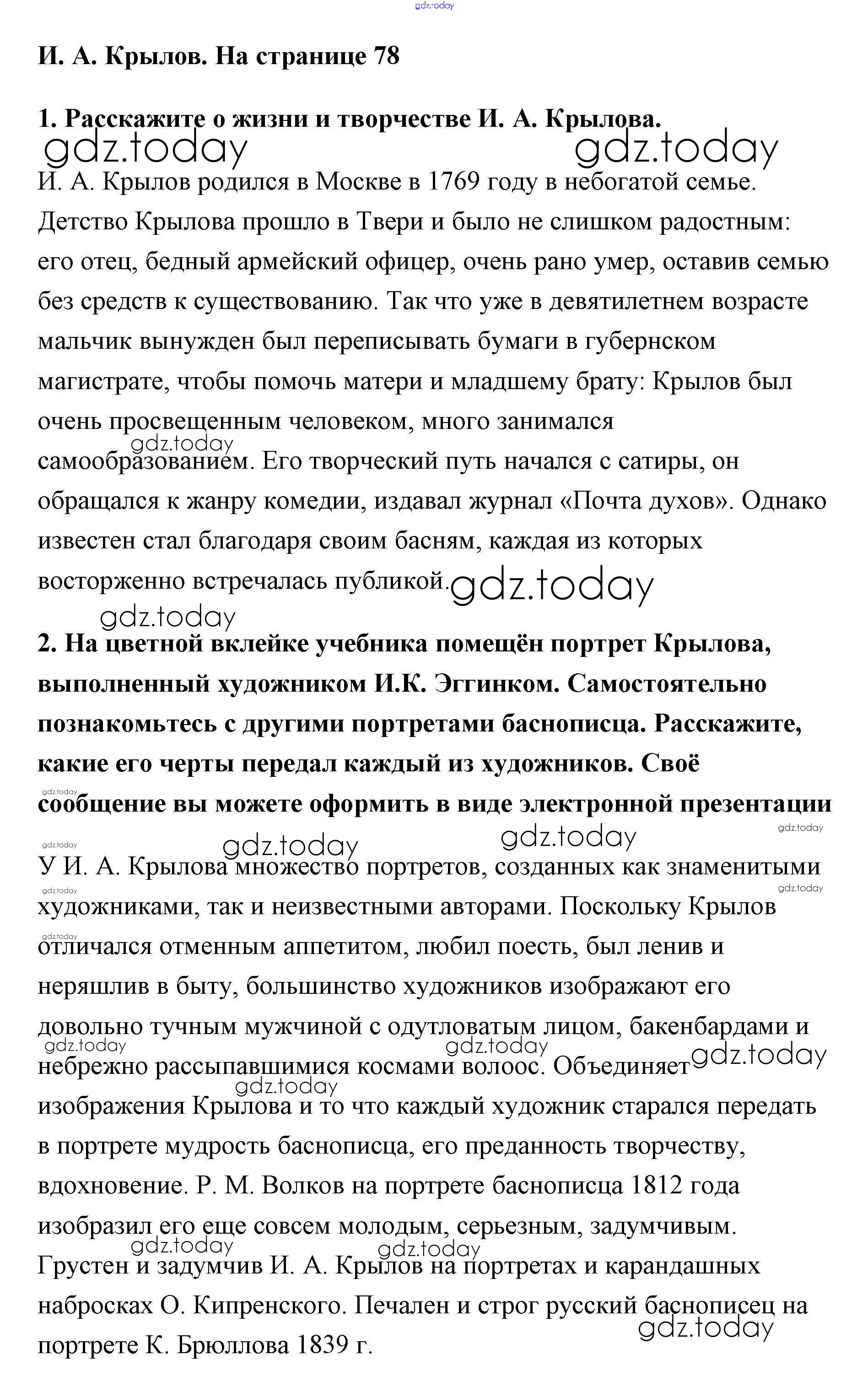 Ответы к Решение к части 1 (Страницы) 78 Учебнику по Литературе для 5 класса Меркин Русское слово Инновационная школа 2016