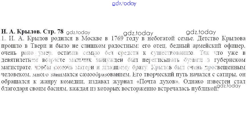 На страницах сайта gdz.today вы найдете учебный и вспомогательный материал, направленный на улучшения знаний школьной программы. ГДЗ - онлайн мир знаний Решение к части 1 (Страницы) 78 Учебнику по Литературе для 5 класса Меркин Русское слово Инновационная школа 2016
