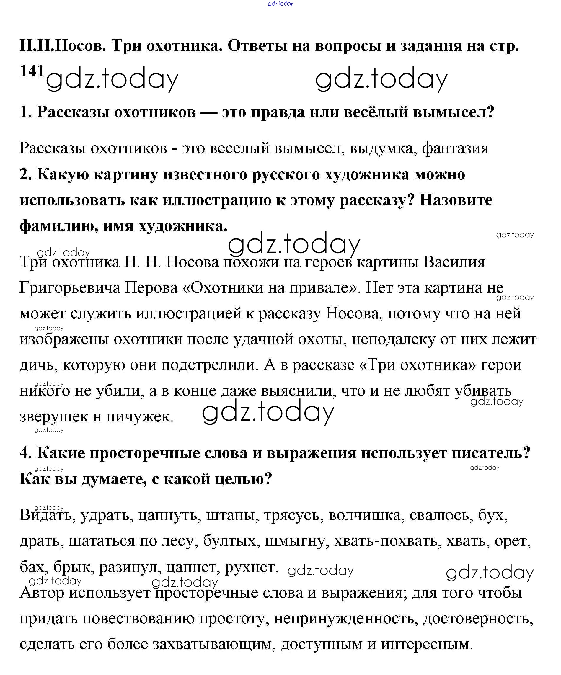 Ответы к Н. Н. Носов Решение к части 2 (Страницы) 141 Учебнику по Литературе для 5 класса Меркин Русское слово Инновационная школа 2016