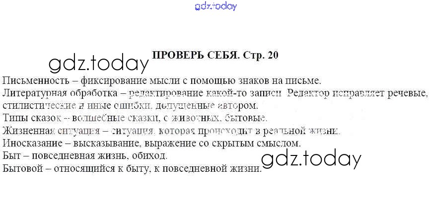 На страницах сайта gdz.today вы найдете учебный и вспомогательный материал, направленный на улучшения знаний школьной программы. ГДЗ - онлайн мир знаний Русские народные сказки Решение к части 1 Проверь себя (стр. 20) Учебнику по Литературе для 5 класса Москвин Вентана-граф Алгоритм успеха 2020