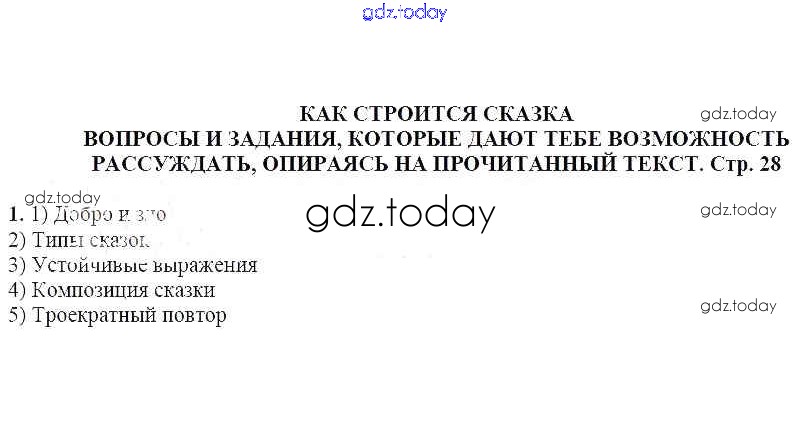 На страницах сайта gdz.today вы найдете учебный и вспомогательный материал, направленный на улучшения знаний школьной программы. ГДЗ - онлайн мир знаний Вопросы и задания, которые дают тебе возможность рассуждать, опираясь на прочитанный текст (стр. 28) Как строится сказка 1 Учебнику по Литературе для 5 класса Москвин Вентана-граф Алгоритм успеха 2020