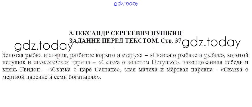 На страницах сайта gdz.today вы найдете учебный и вспомогательный материал, направленный на улучшения знаний школьной программы. ГДЗ - онлайн мир знаний Александр Сергеевич Пушкин Решение к части 1 Задание перед текстом (стр. 37) Учебнику по Литературе для 5 класса Москвин Вентана-граф Алгоритм успеха 2020