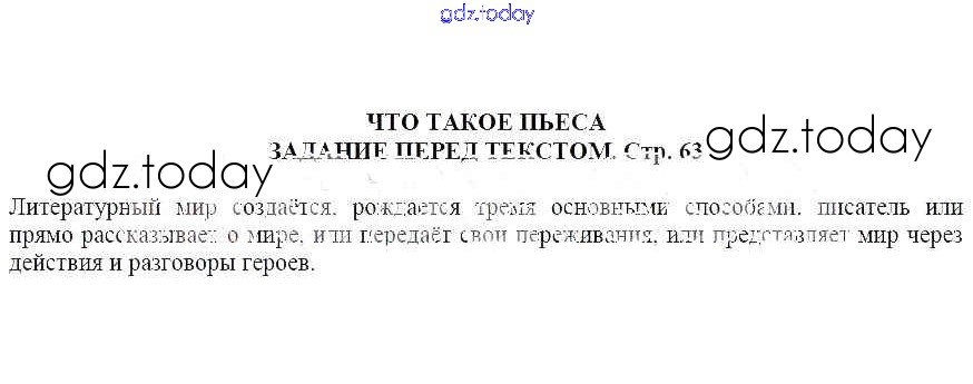 На страницах сайта gdz.today вы найдете учебный и вспомогательный материал, направленный на улучшения знаний школьной программы. ГДЗ - онлайн мир знаний Что такое пьеса Решение к части 1 Задания перед текстом (стр.63) Учебнику по Литературе для 5 класса Москвин Вентана-граф Алгоритм успеха 2020