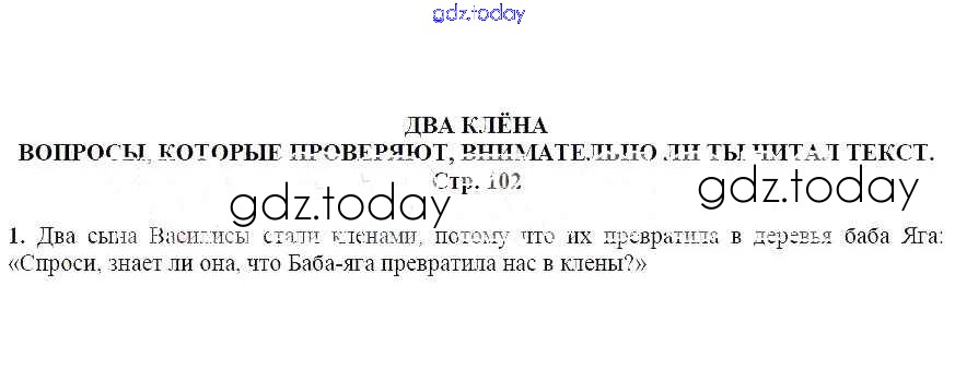 На страницах сайта gdz.today вы найдете учебный и вспомогательный материал, направленный на улучшения знаний школьной программы. ГДЗ - онлайн мир знаний Вопросы, которые проверяют, внимательно ли ты читал текст (стр. 102) Два клена 1 Учебнику по Литературе для 5 класса Москвин Вентана-граф Алгоритм успеха 2020