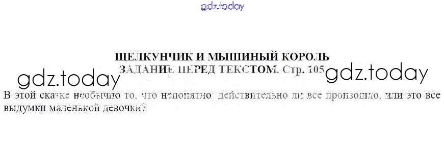 На страницах сайта gdz.today вы найдете учебный и вспомогательный материал, направленный на улучшения знаний школьной программы. ГДЗ - онлайн мир знаний Щелкунчик и мышиный король Решение к части 1 Задания перед текстом (стр.105) Учебнику по Литературе для 5 класса Москвин Вентана-граф Алгоритм успеха 2020