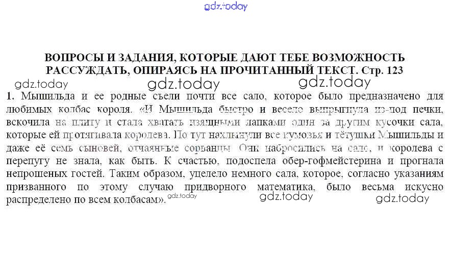 На страницах сайта gdz.today вы найдете учебный и вспомогательный материал, направленный на улучшения знаний школьной программы. ГДЗ - онлайн мир знаний Вопросы и задания, которые дают тебе возможность рассуждать, опираясь на прочитанный текст (стр. 123) Щелкунчик и мышиный король 1 Учебнику по Литературе для 5 класса Москвин Вентана-граф Алгоритм успеха 2020