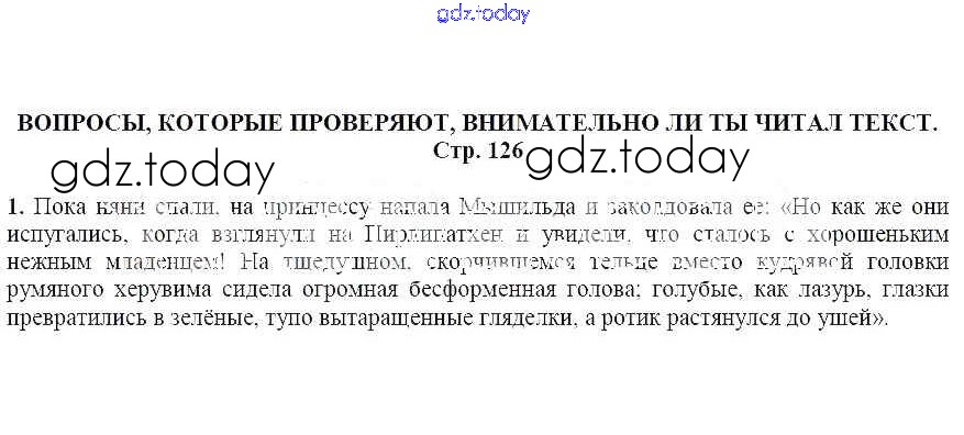 На страницах сайта gdz.today вы найдете учебный и вспомогательный материал, направленный на улучшения знаний школьной программы. ГДЗ - онлайн мир знаний Вопросы, которые проверяют, внимательно ли ты читал текст (стр. 126) Щелкунчик и мышиный король 1 Учебнику по Литературе для 5 класса Москвин Вентана-граф Алгоритм успеха 2020