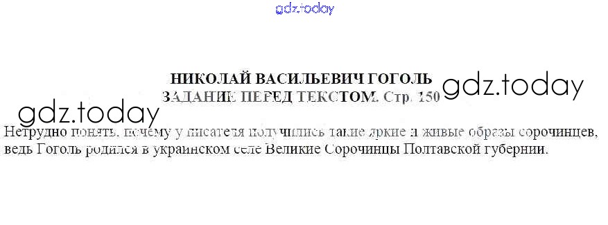 На страницах сайта gdz.today вы найдете учебный и вспомогательный материал, направленный на улучшения знаний школьной программы. ГДЗ - онлайн мир знаний Задания перед текстом (стр.150) Николай Васильевич Гоголь 1 Учебнику по Литературе для 5 класса Москвин Вентана-граф Алгоритм успеха 2020