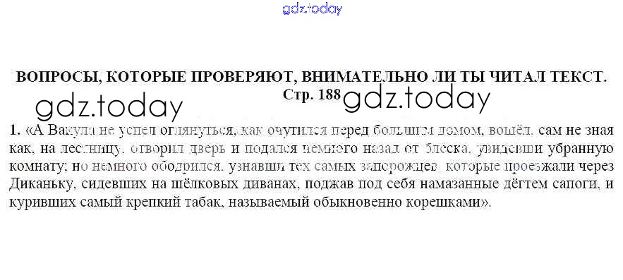 На страницах сайта gdz.today вы найдете учебный и вспомогательный материал, направленный на улучшения знаний школьной программы. ГДЗ - онлайн мир знаний Вопросы, которые проверяют, внимательно ли ты читал текст (стр. 188) Ночь перед Рождеством 1 Учебнику по Литературе для 5 класса Москвин Вентана-граф Алгоритм успеха 2020