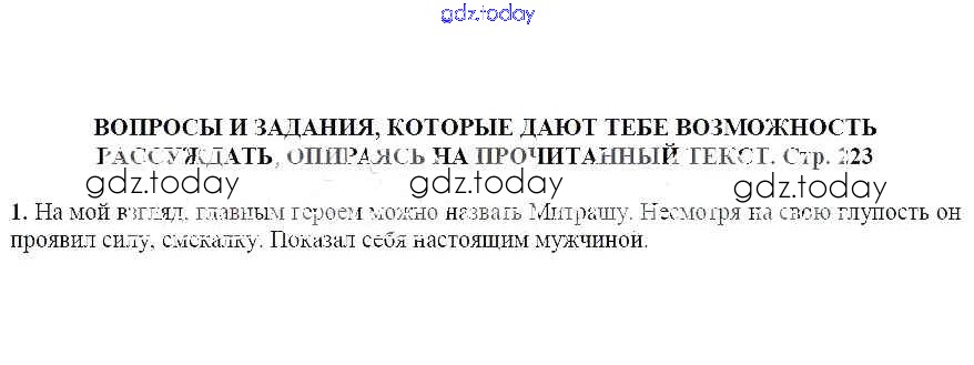 На страницах сайта gdz.today вы найдете учебный и вспомогательный материал, направленный на улучшения знаний школьной программы. ГДЗ - онлайн мир знаний Вопросы и задания, которые дают тебе возможность рассуждать, опираясь на прочитанный текст (стр. 223) Кладовая солнца 1 Учебнику по Литературе для 5 класса Москвин Вентана-граф Алгоритм успеха 2020