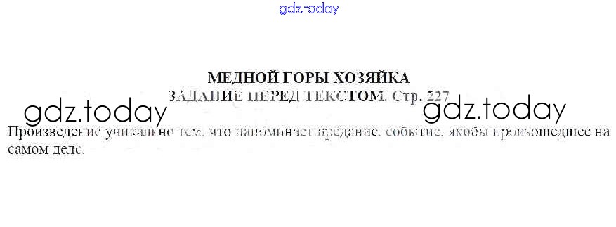 На страницах сайта gdz.today вы найдете учебный и вспомогательный материал, направленный на улучшения знаний школьной программы. ГДЗ - онлайн мир знаний Медной горы хозяйка Решение к части 1 Задание перед текстом (стр. 227) Учебнику по Литературе для 5 класса Москвин Вентана-граф Алгоритм успеха 2020
