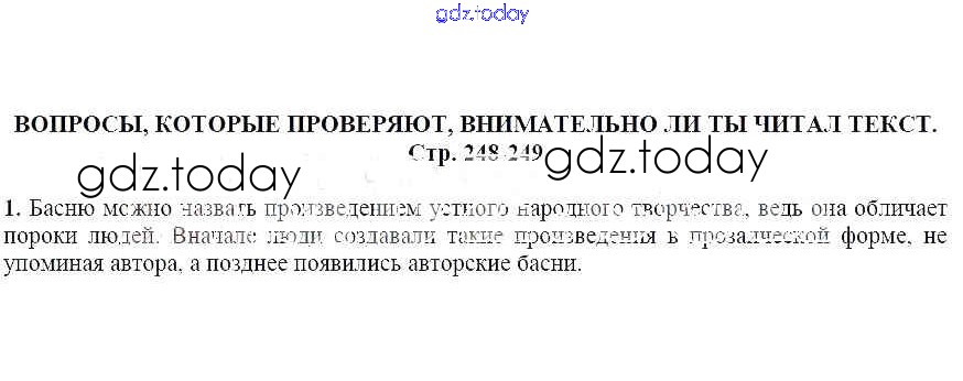На страницах сайта gdz.today вы найдете учебный и вспомогательный материал, направленный на улучшения знаний школьной программы. ГДЗ - онлайн мир знаний Вопросы, которые проверяют, внимательно ли ты читал текст (стр. 248-249) Басня 1 Учебнику по Литературе для 5 класса Москвин Вентана-граф Алгоритм успеха 2020