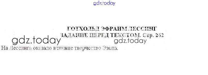 На страницах сайта gdz.today вы найдете учебный и вспомогательный материал, направленный на улучшения знаний школьной программы. ГДЗ - онлайн мир знаний Готхольд Эфраим Лессинг Решение к части 1 Задание перед текстом (стр. 262) Учебнику по Литературе для 5 класса Москвин Вентана-граф Алгоритм успеха 2020